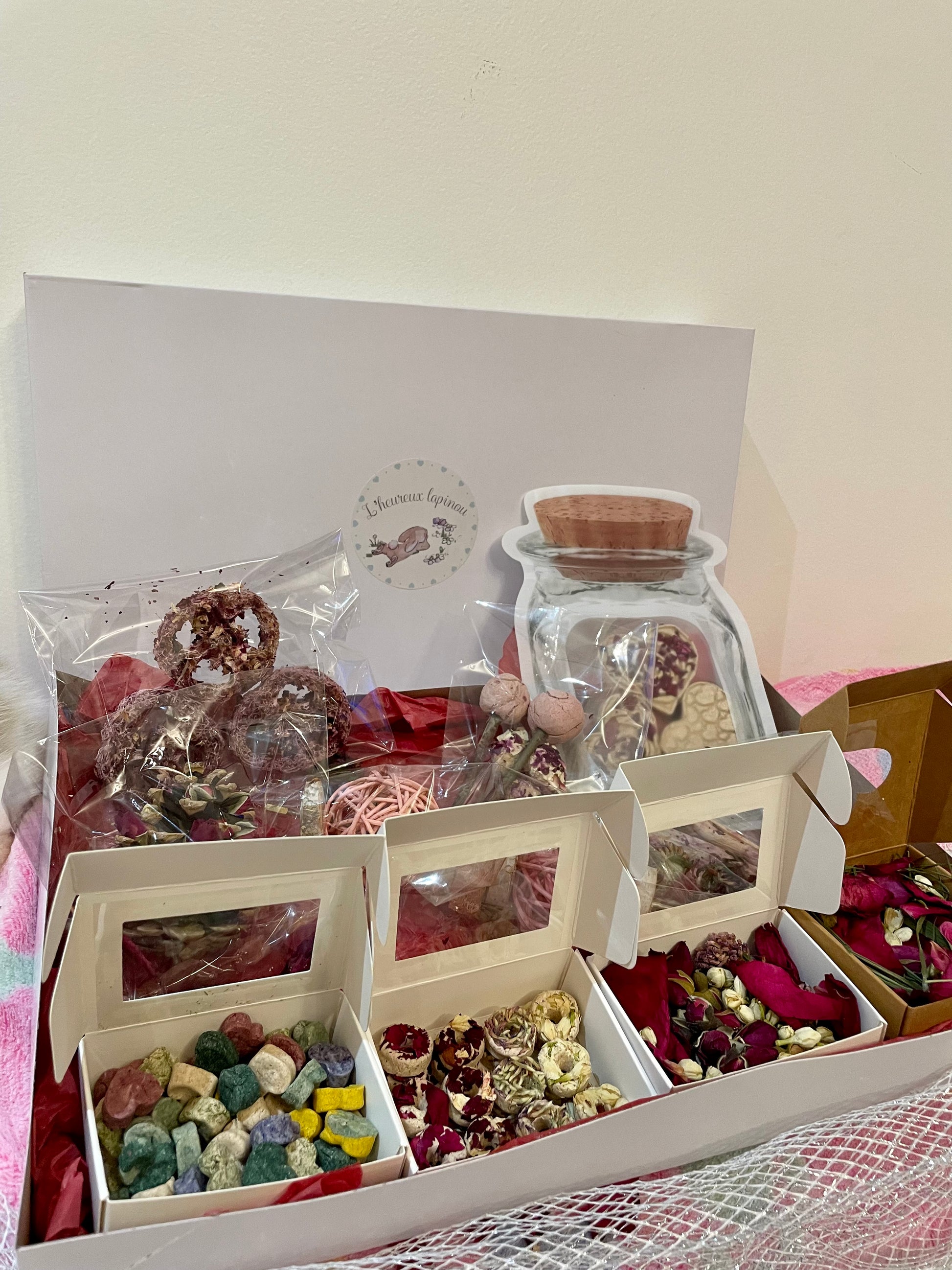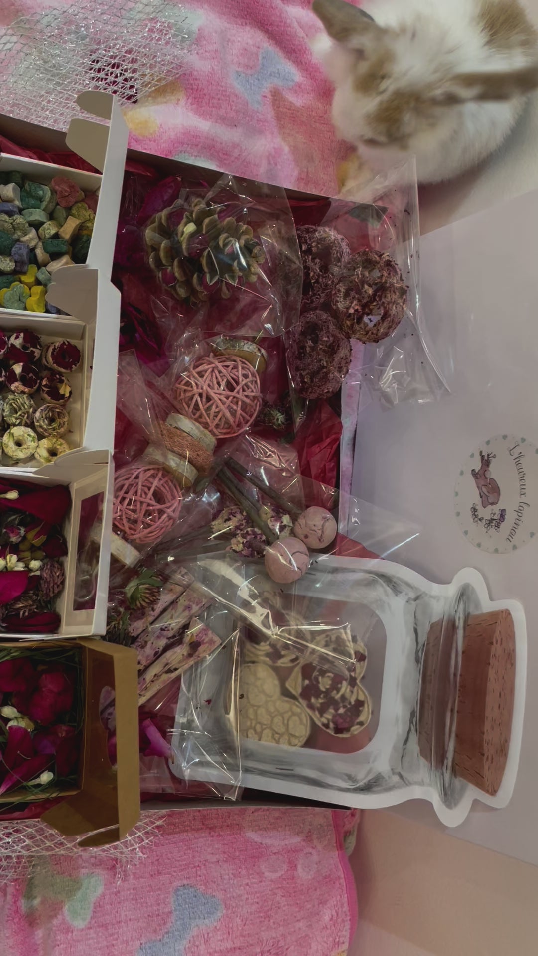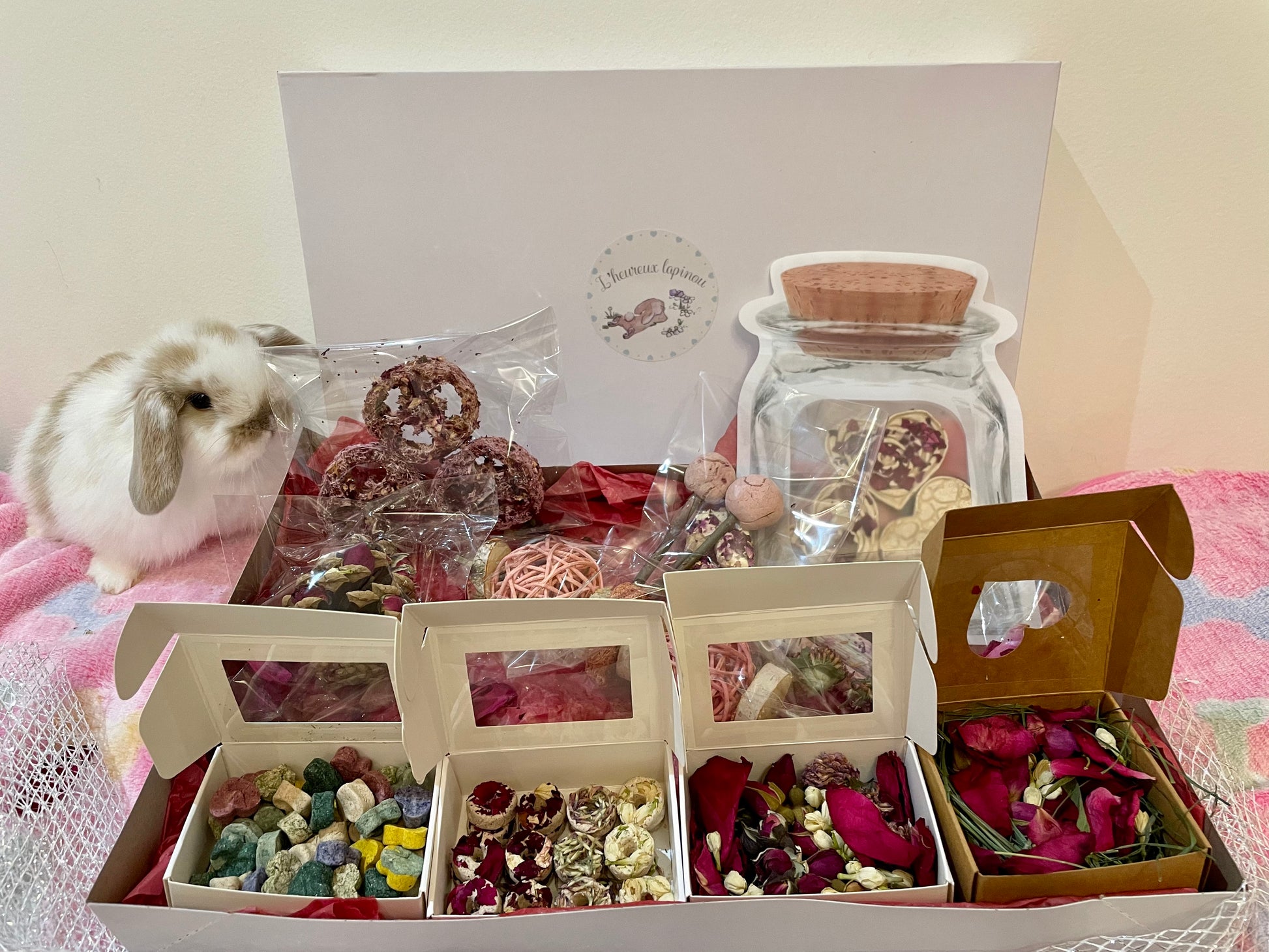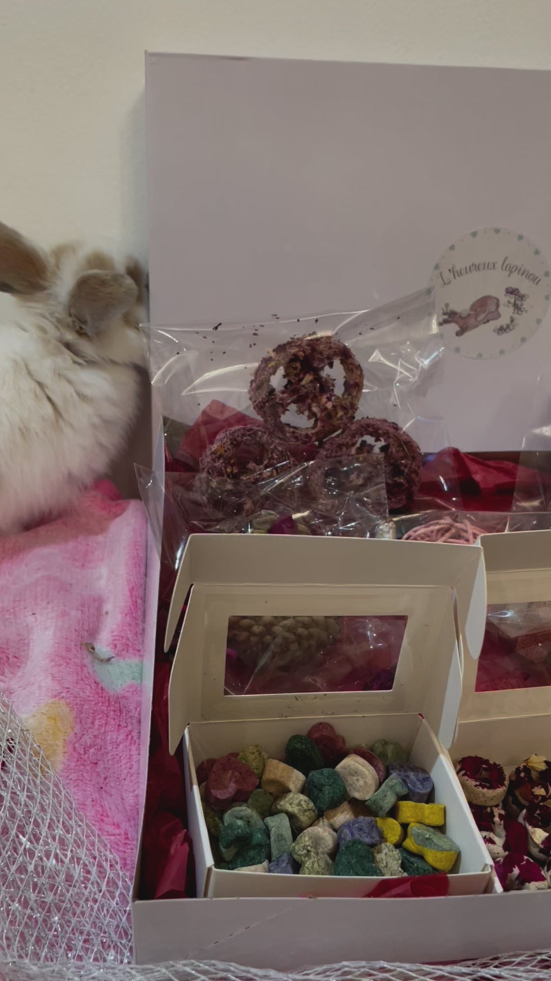 Save $25 by purchasing this bundle! Spoil your rabbit (or other small animal) for Valentine's Day with "Cupid's Gift." A very budget-friendly gift set. Carefully packed and filled with delights, it's a perfect way to show that your beloved companion is an integral part of your celebrations!