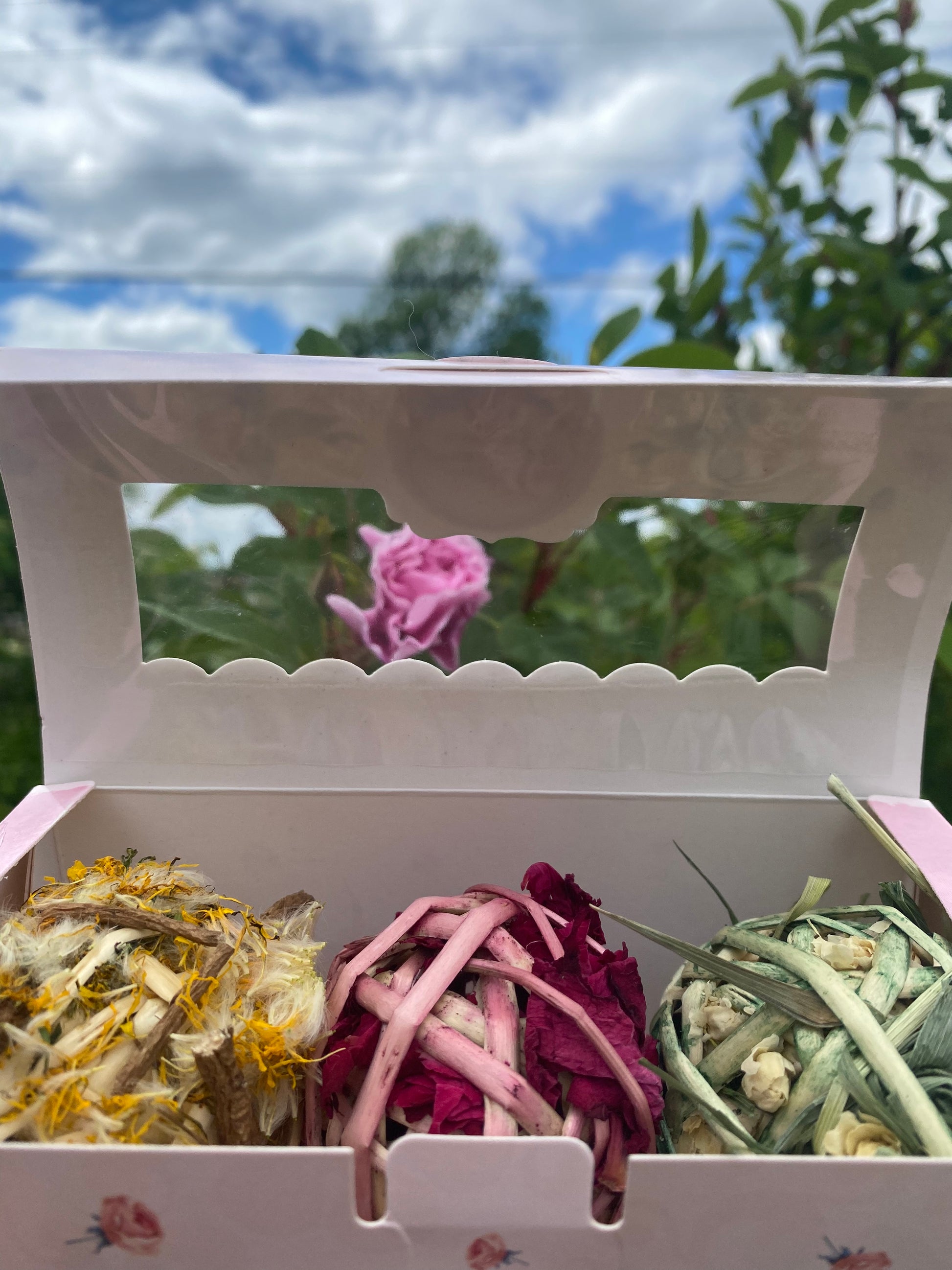 Rose Petal & Hibiscus Bliss: Savory delights infused with the fragrant essence of rose petals and hibiscus flowers, promoting digestion and providing a dose of antioxidants.