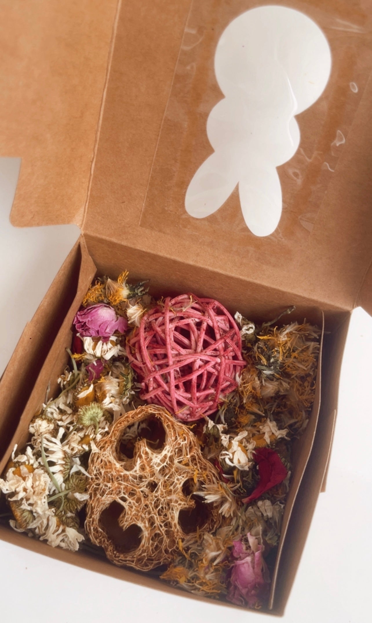 An irresistible spring mix featuring a wild blackberry vine ball, a generous carrot-flavored loofah, and a delicate blend of natural flowers.