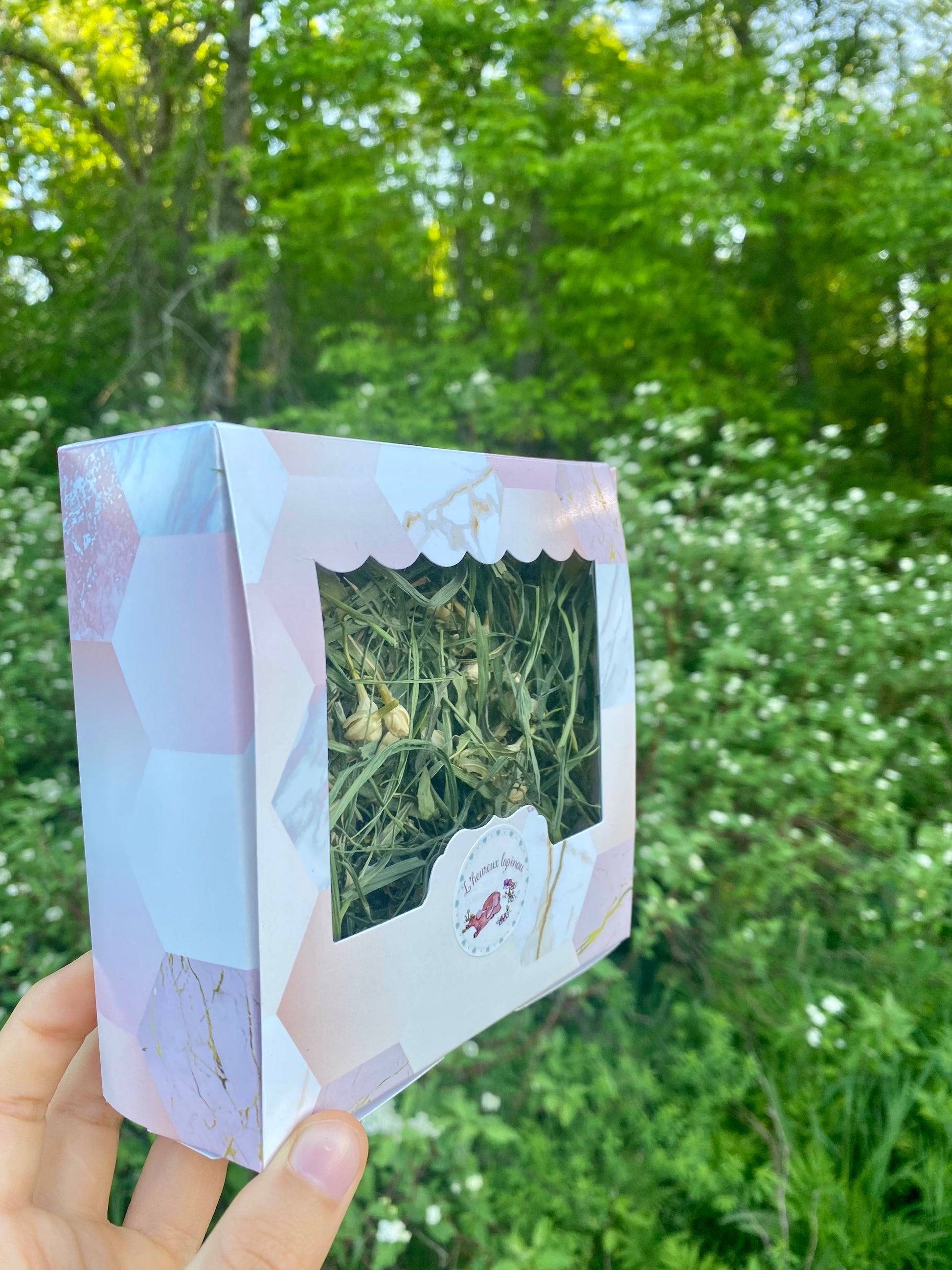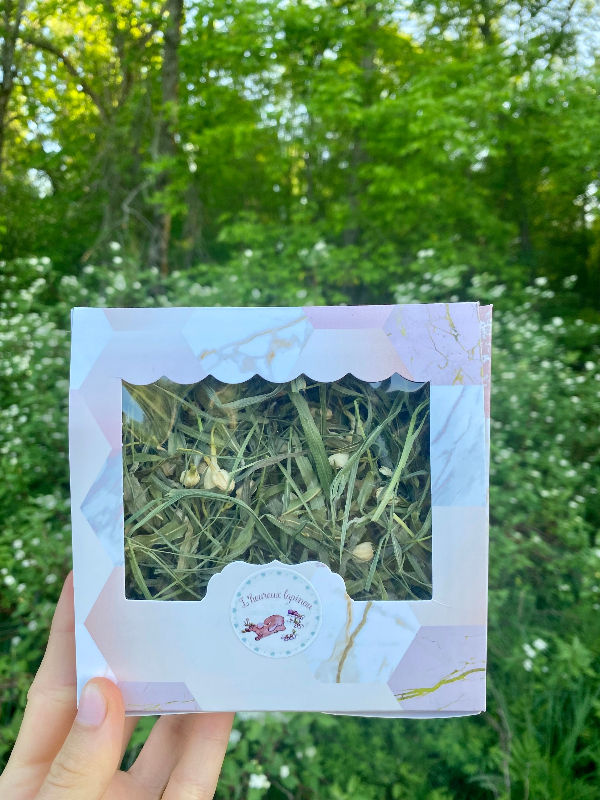 Il est largement reconnu que les plantes possèdent des vertus médicinales et bénéfiques pour la santé. Notre mélange exclusif d'herbes fraîches, de feuilles de saule et de fleurs de jasmin a été spécialement formulé pour apaiser l'anxiété et favoriser la relaxation. Parfait pour les moments stressants tels que les visites chez le vétérinaire, ce mélange offre à votre compagnon une sensation de calme et de réconfort grâce aux propriétés apaisantes des fleurs de jasmin et du saule. De plus, l'herbe fraîche, riche en nutriments essentiels, contribue également à la santé digestive de votre animal. Ainsi, son bien-être mental, émotionnel et physique est assuré.