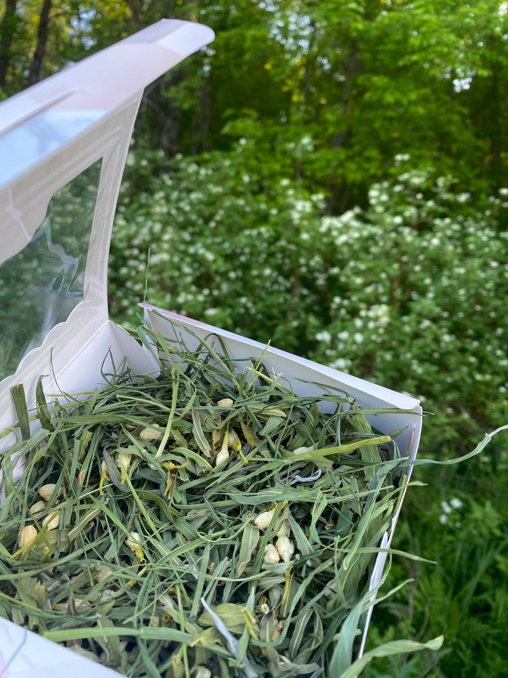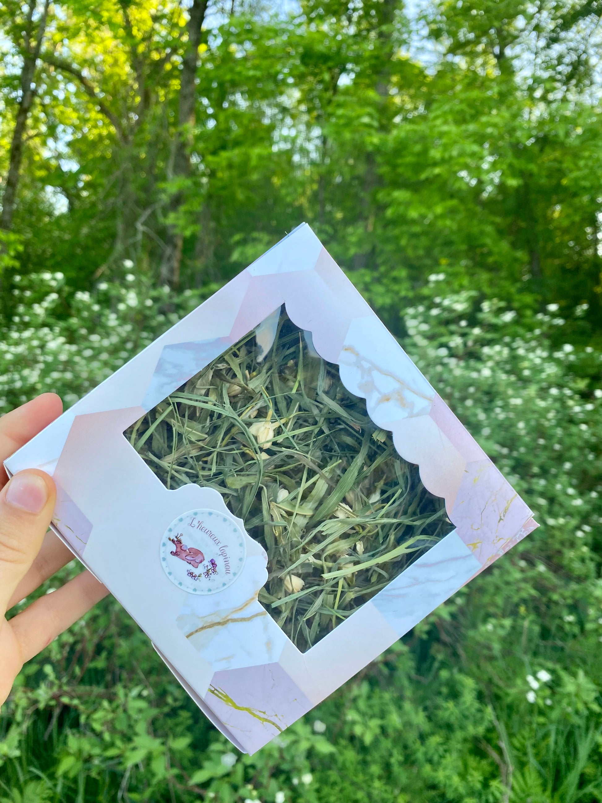 Ingrédients : Herbe fraîche naturelle, jasmin naturel, feuille de saule naturelles