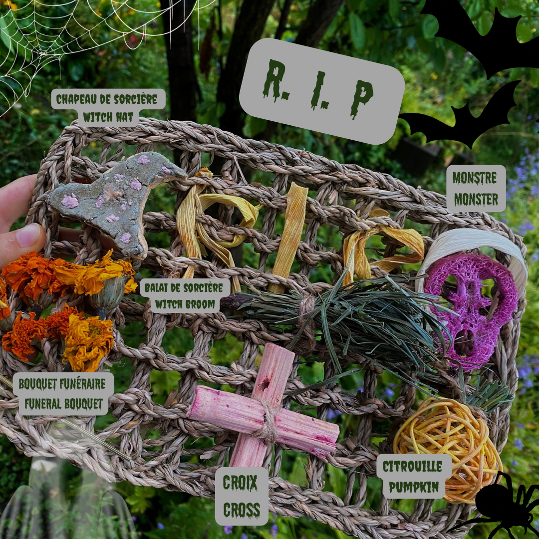 - **Chapeau de sorcière** : une gâterie naturelle attachée pour régaler votre animal avec une touche de magie.
