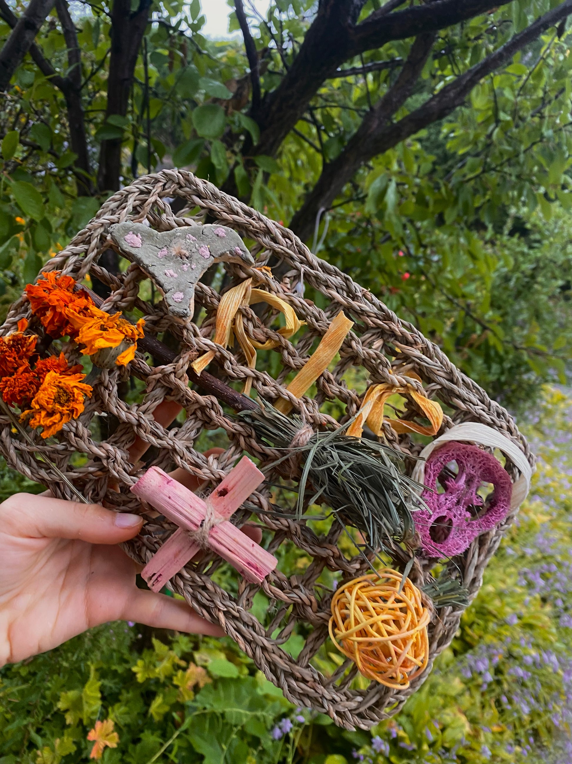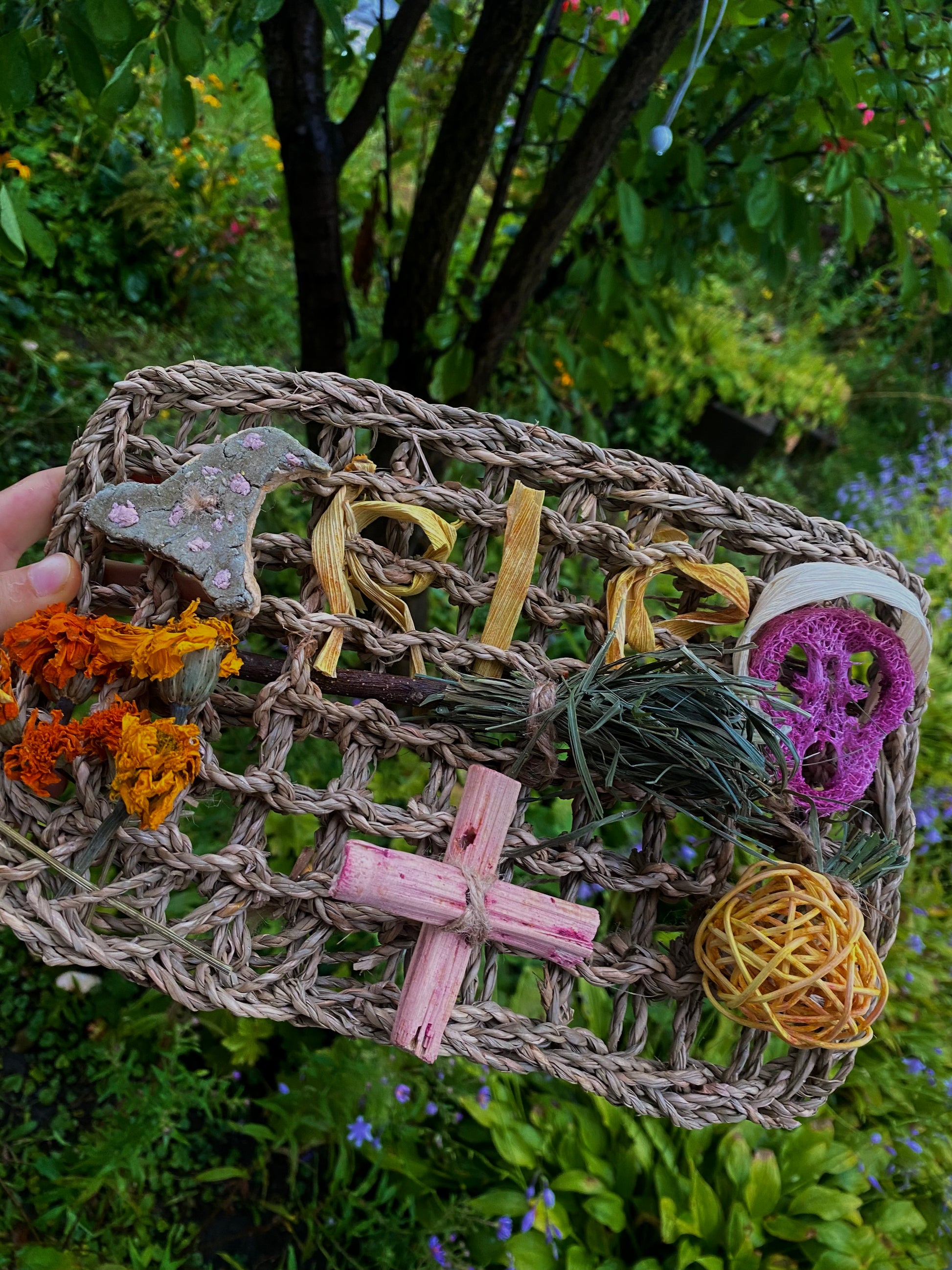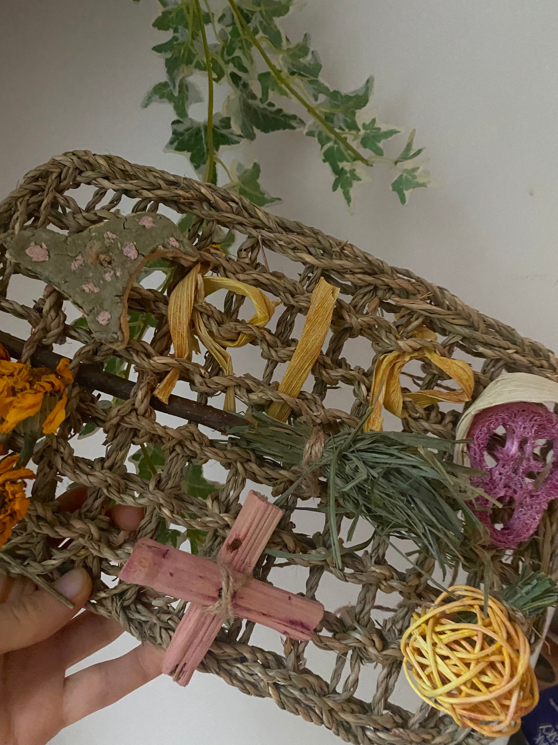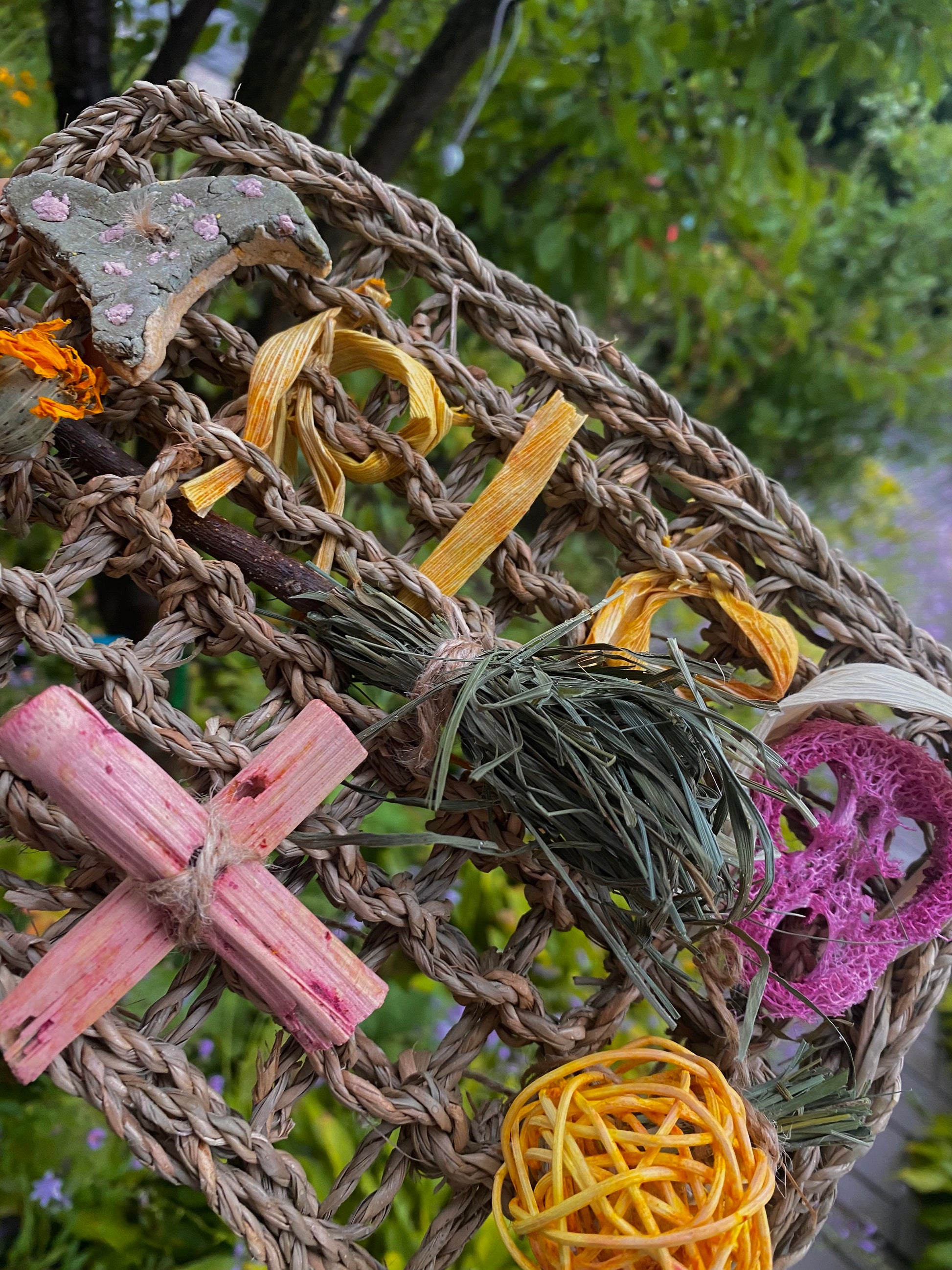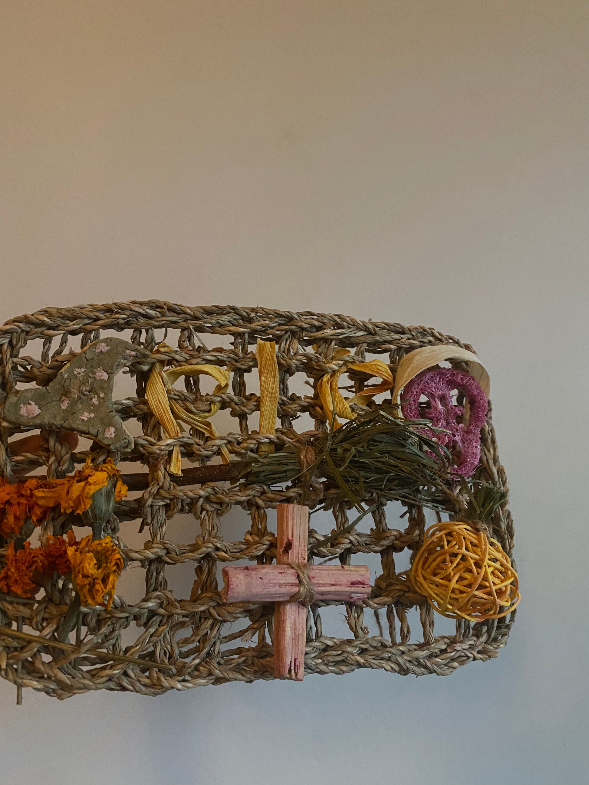 - **Croix en bambou colorée de betterave** : un accent visuel unique qui capte l'œil.